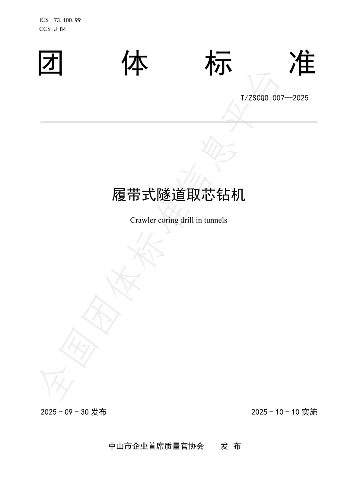 | 标准编号 | T/ZSCQO 007—2025 | ||