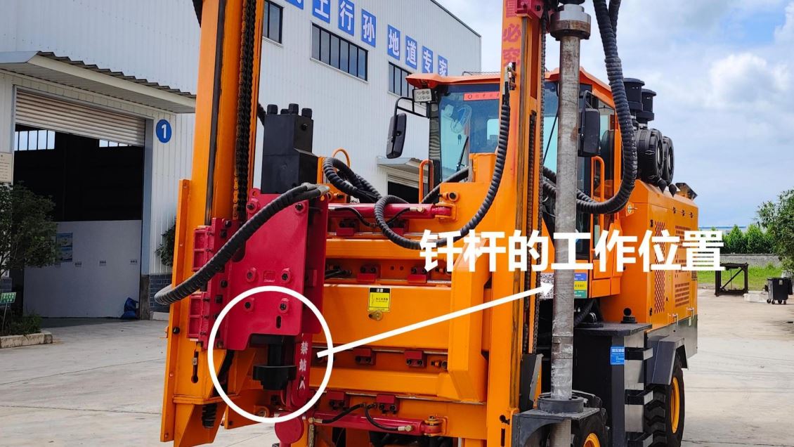 下图可以看到钎杆在护栏打拔钻一体机中打桩机构中的位置: