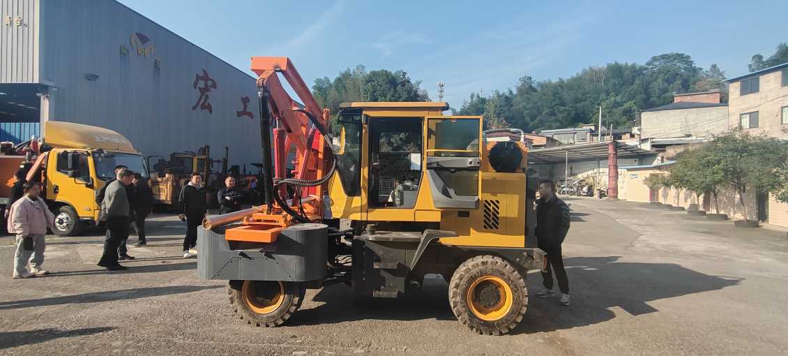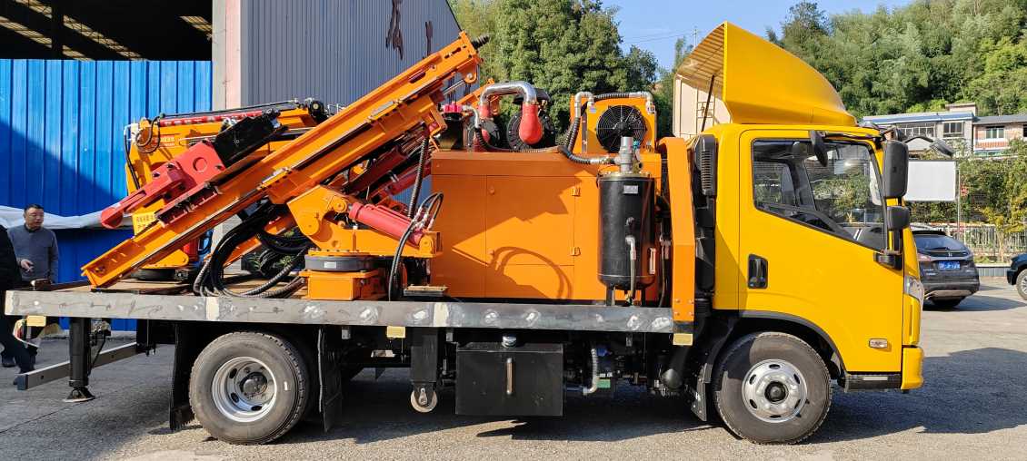 还有就是工程量少,作业分散,施工要求不高,可以选择车载式打钻一体机。或者是首次做公路安保工程,量不多,主张选用重庆宏工车载式打钻一体机,收放便捷,转场快速,还可以把您手中闲置的轻卡合理利用,节省工程开支。