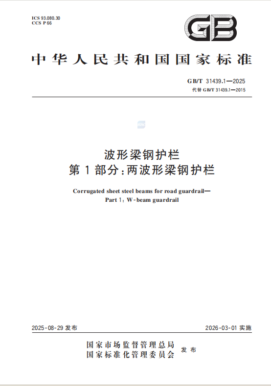 GBT-31439.1-2025-波形梁钢护栏-第1部分-两波形梁钢护栏
