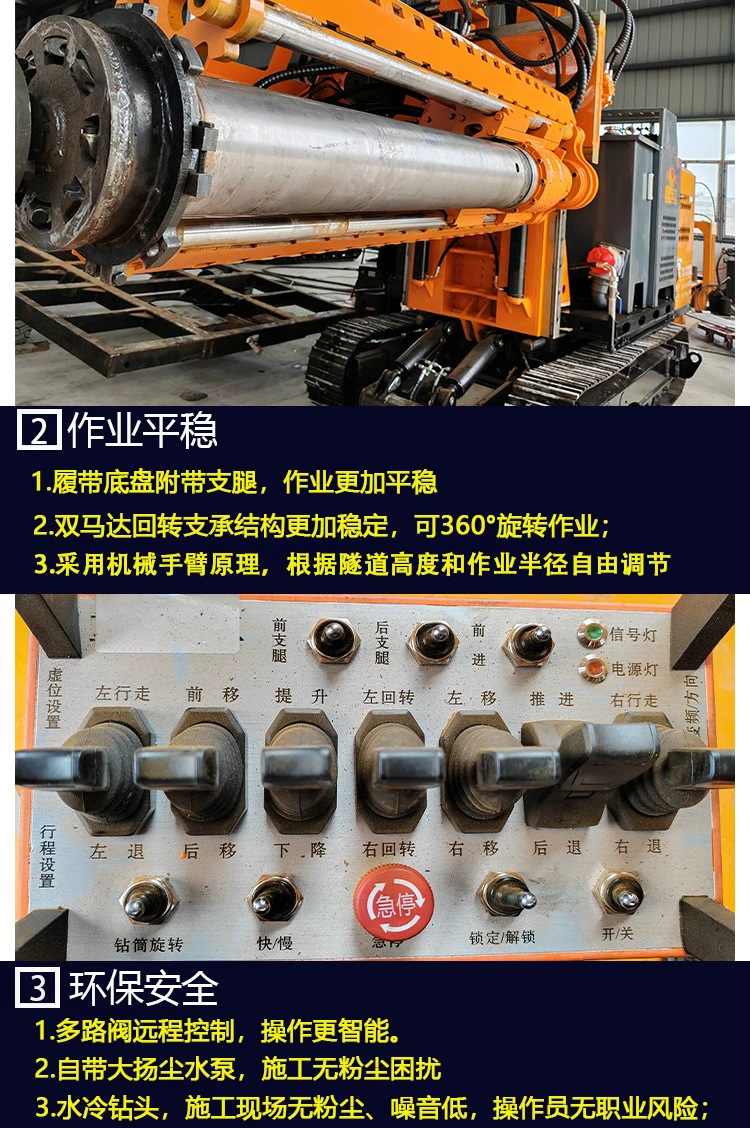设备掘进过程中水冷钻头,无粉尘,耗电耗水量少,所需操作人员少,噪音小,不扰民,掘进断面边缘光滑,对岩层无扰动,支护要求低,掘进速度快,是取代爆破和人工水磨钻的一种新式隧道掘进设备。