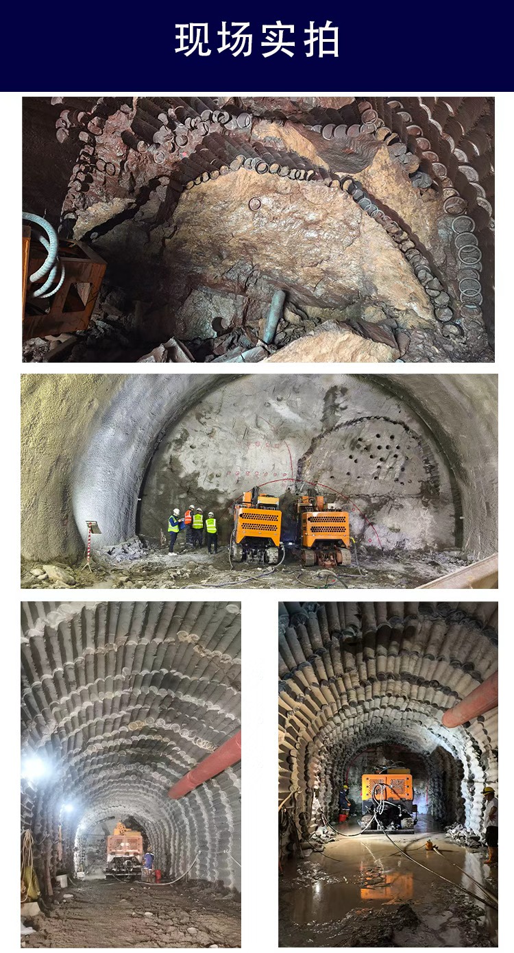 设备设计紧凑,最小可进入2米见方的小隧道,也可以在中大型隧道施工中使用。同时,改进后的钻架钻筒钻齿,可以处理花岗岩、大理石这种等级的超硬岩石。